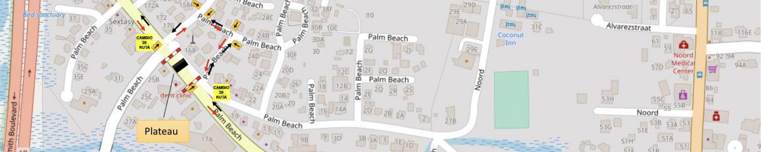 Ruta di desviacion lo keda indica cu borchi y baricadanan di aviso.