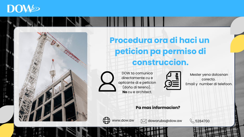 Pa cualkier pregunta of pa wak bo aplicacionan, bo por tuma contacto via dowaruba@dow.aw of +297 528 4700